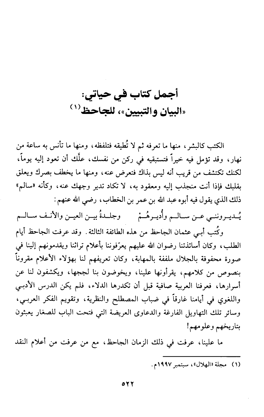 (1) مجلة "الهلال"، سبتمبر 97 9 1 م.