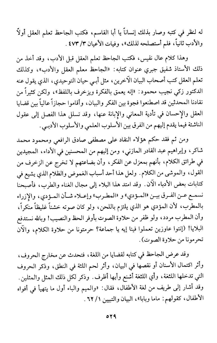 وهذا كلام عال نفيس، فكتب الجاحظ تعلم العقل قبل الأدب، وقد اخذ من