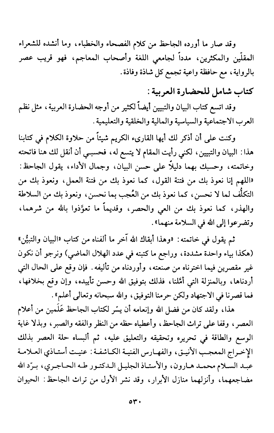 العصر، وقفا على تراث الجاحط، وأعطياه حظه من النظر والفقه والصبر، وبذلا غاية