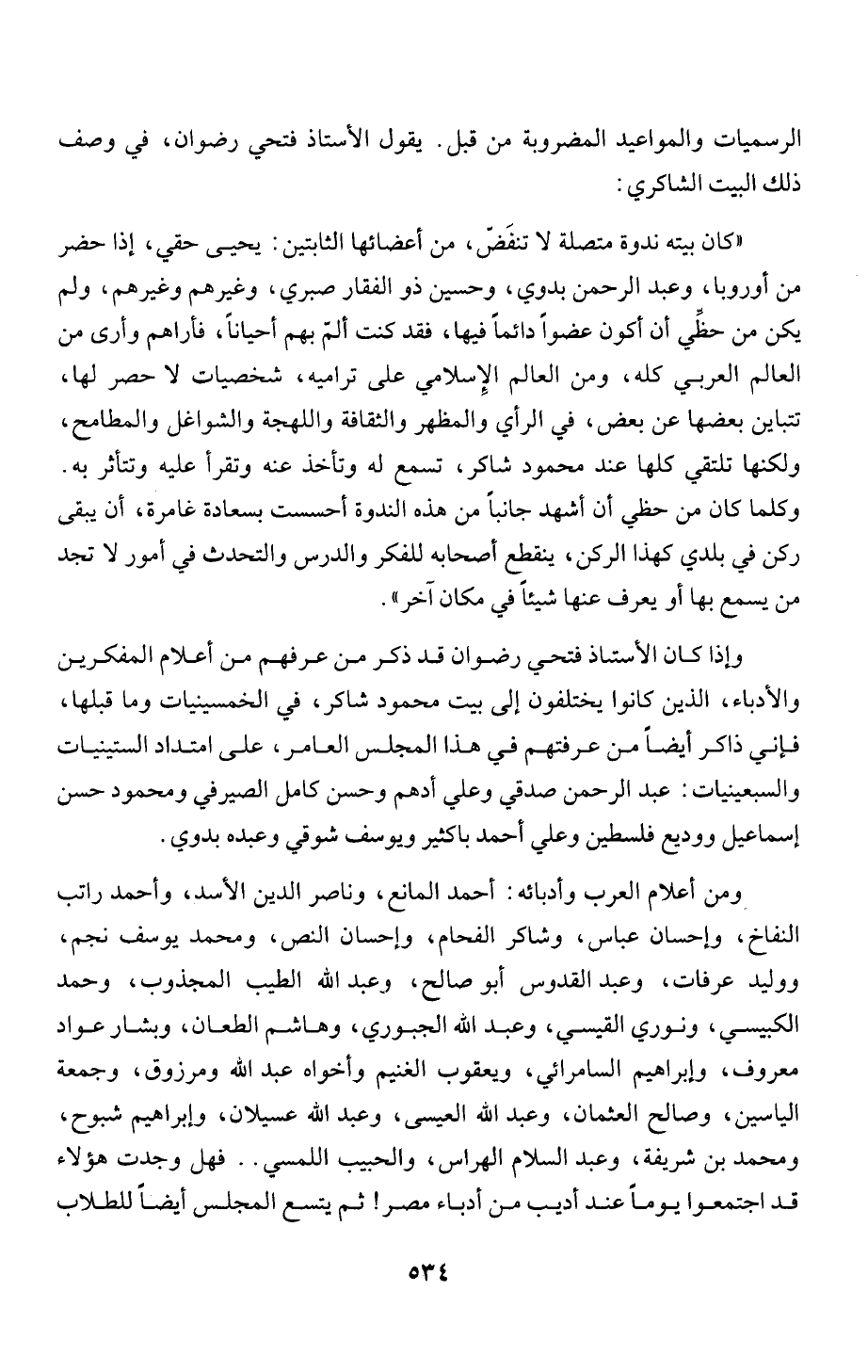 "كان بيته ندوة متصلة لا تنفَفق، من أعضائها الثابتين: يحيى حقي، إذا حضر