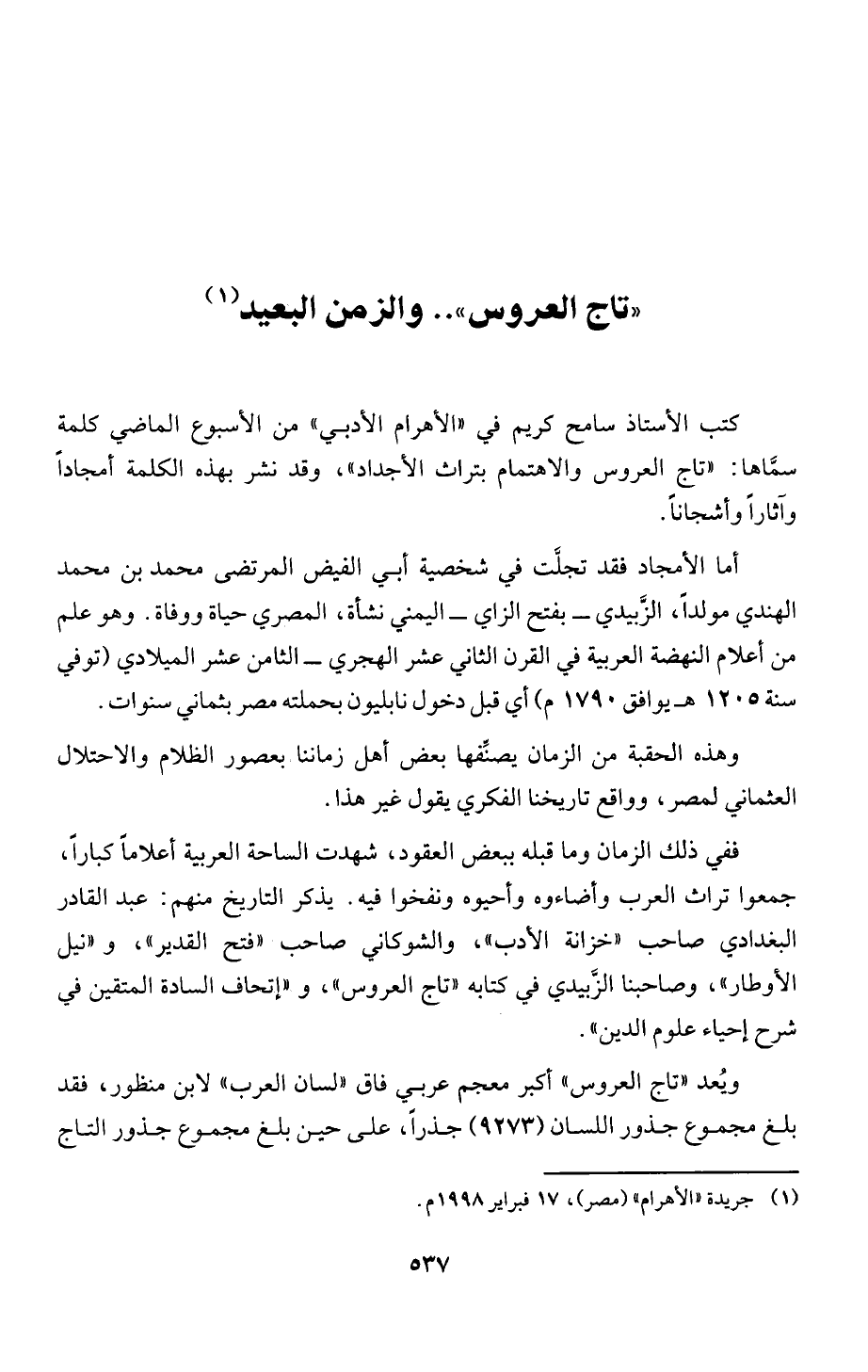 (1) جريدة "الأهرام" (مصر)، 17 فبراير 98 9 1 م.