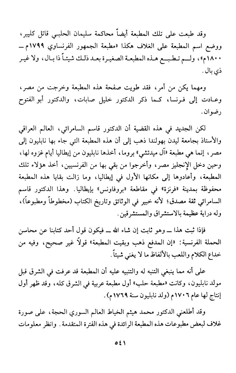 والأستاذ بجامعة ليدن بهولندا ذهب إلى أن هذه المطبعة التي جاء بها نابليون إلى