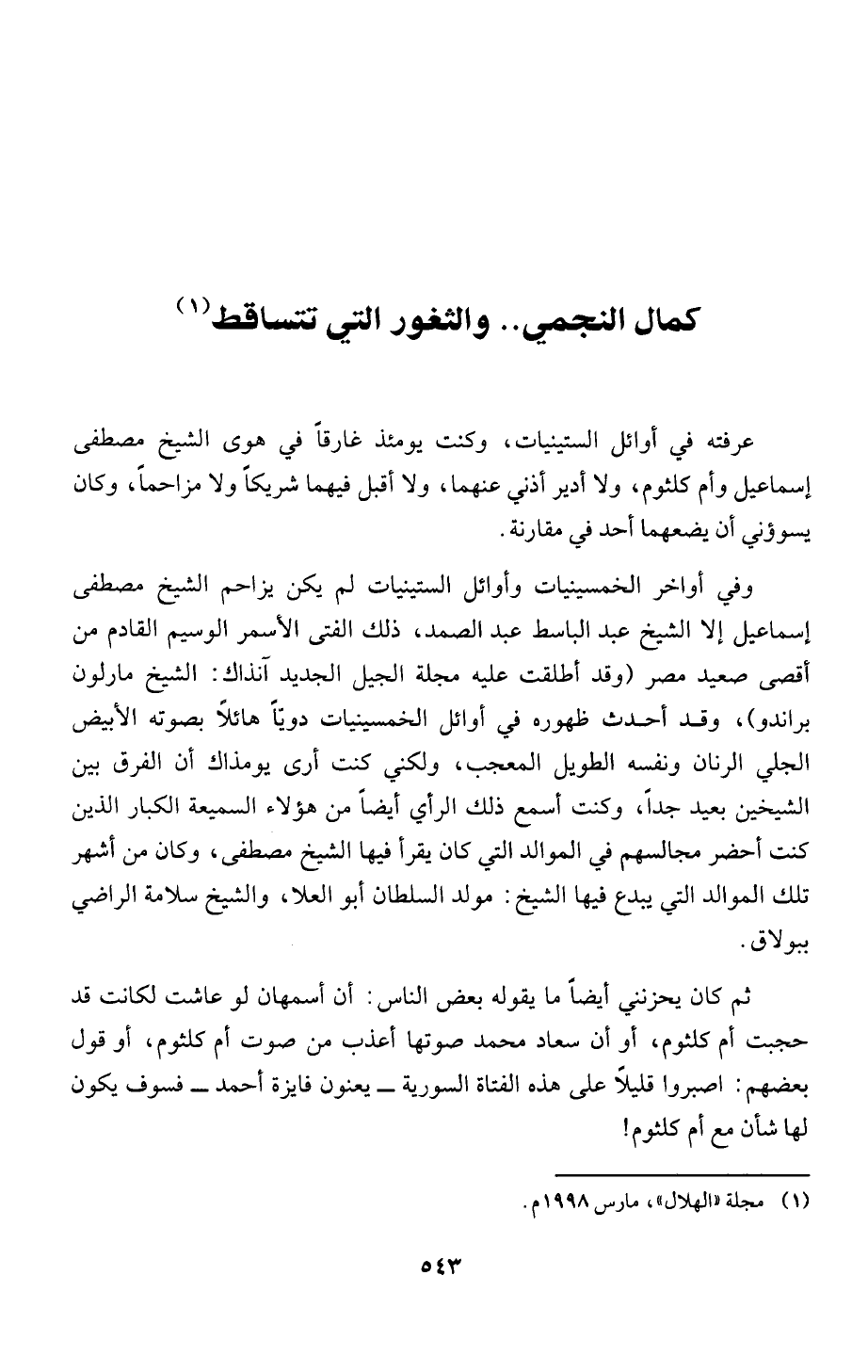 (1) مجلة "الهلال"، مارس 1998 م.