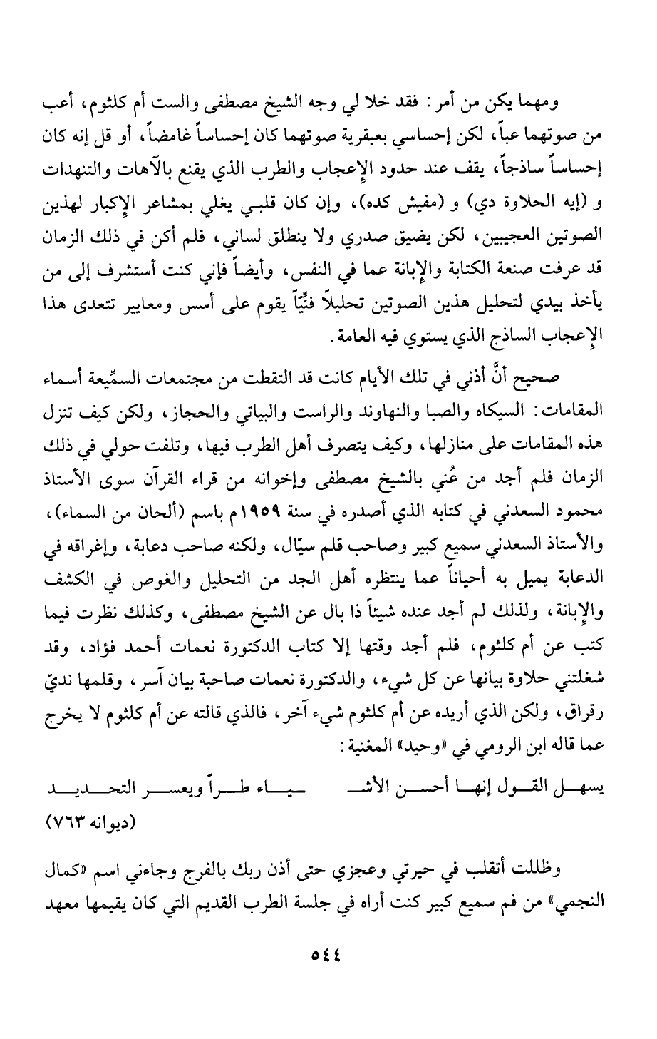 ومهما يكن من أمر: ففد خلا لي وجه الشيخ مصطفى والست أم كلثوم، أعب