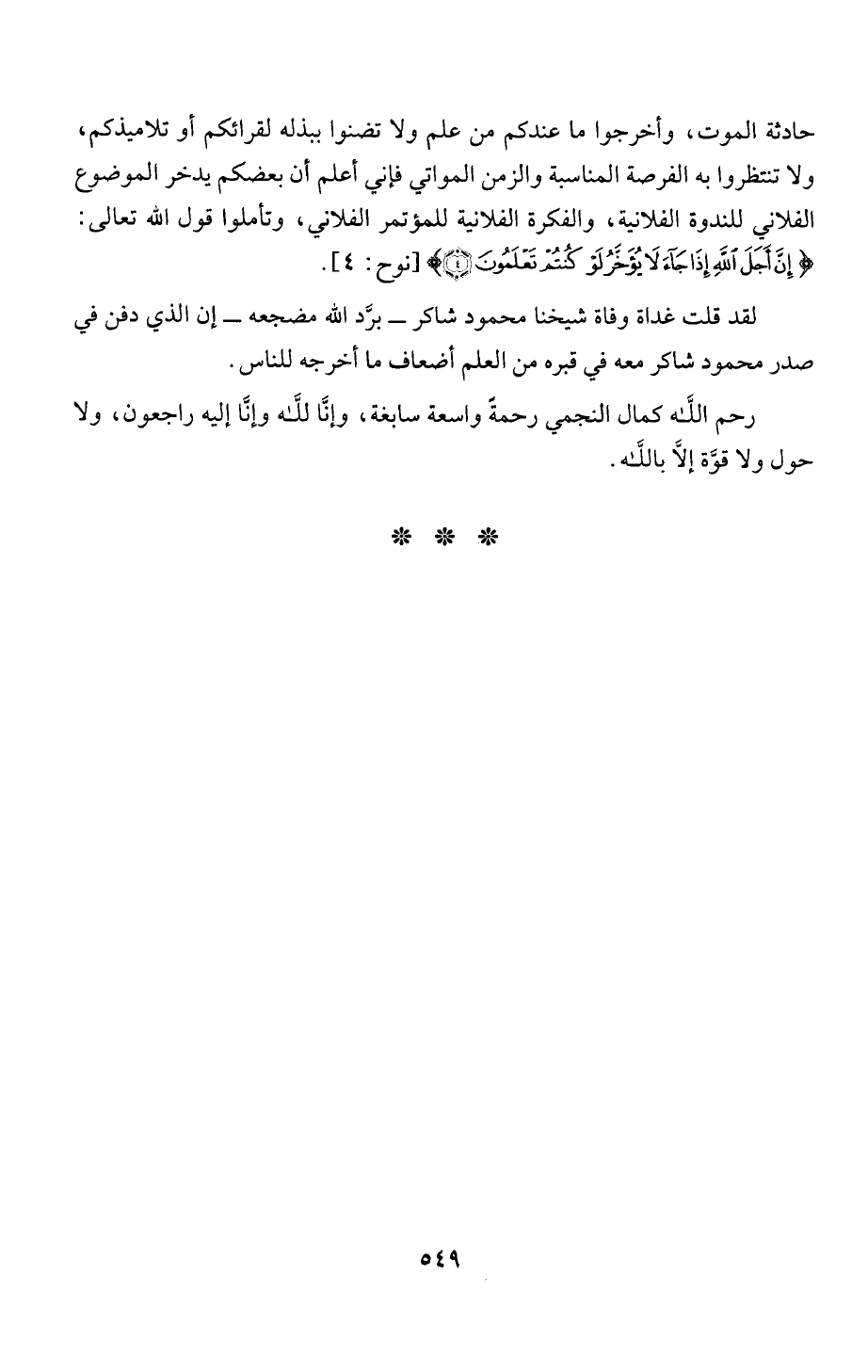 حادثة الموت، وأخرجوا ما عندكم من علم ولا تضنوا ببذله لقرائكم أو تلاميذكم،