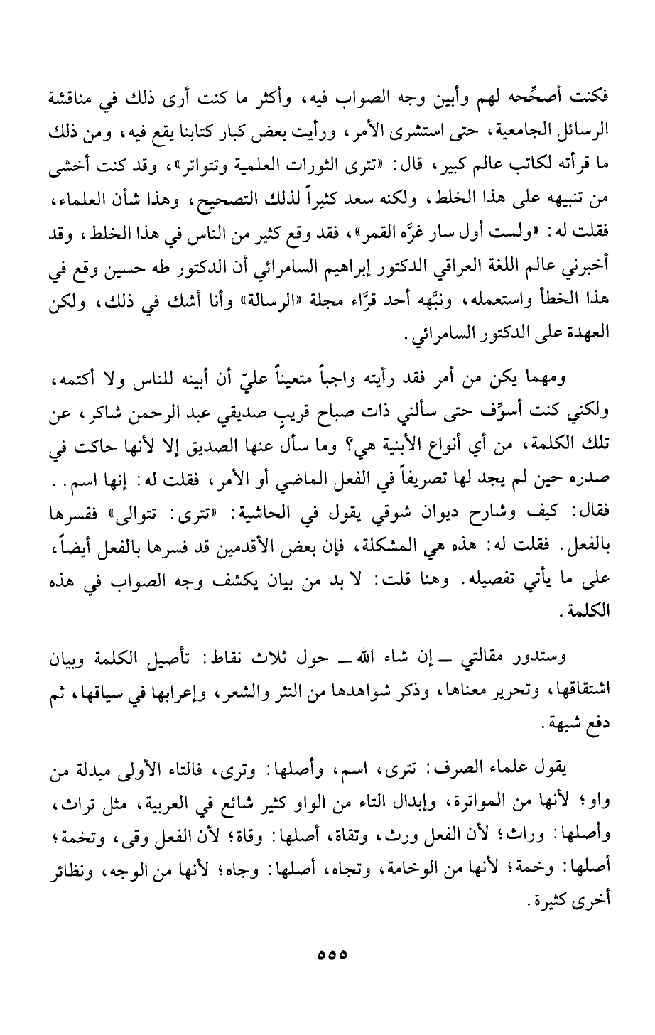اخبرني عالم اللغة العراقي الدكتور إبراهيم السامرائي أن الدكتور طه حسين وقع في