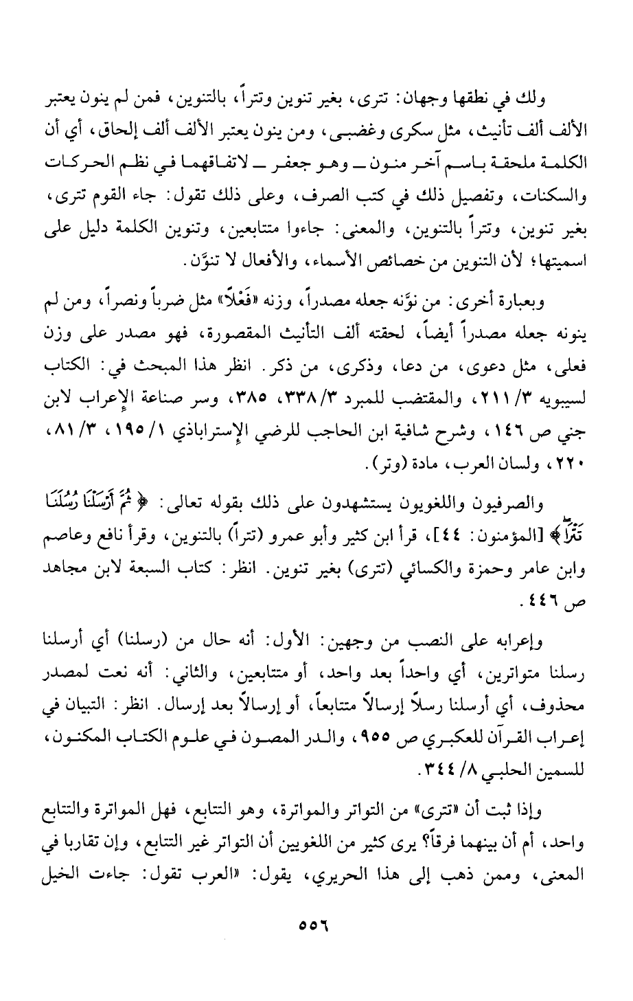 تَتْرَا " ا المؤمنون: 4 4)، قرا ابن كثير وأبو عمرو (تتراً) بالتنوين، وقرأ نافع وعاصم