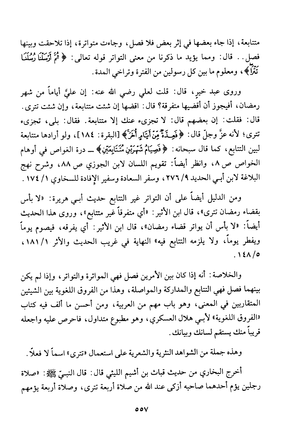 لبين التتابع، كما قال سبحانه: "فَصِيَامُ شَهْرَئنِ مُتَتَابِعَتن " - درة الغواص في اوهام
