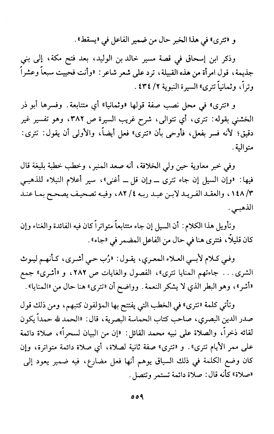 الخشني بقوله: تترى، أي تتوالى، شرح غريب السيرة ص 382، وهو تفسير غير