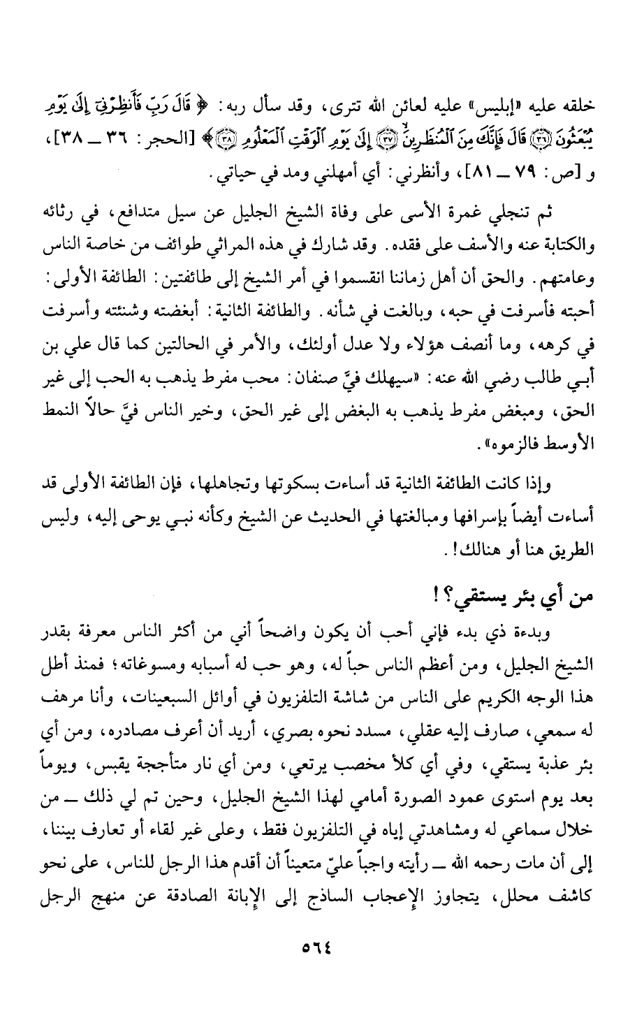 اساءت ايضاَ بإسرافها ومبالغتها في الحديث عن الشيخ وكأنه نبي يوحى إليه، وليس