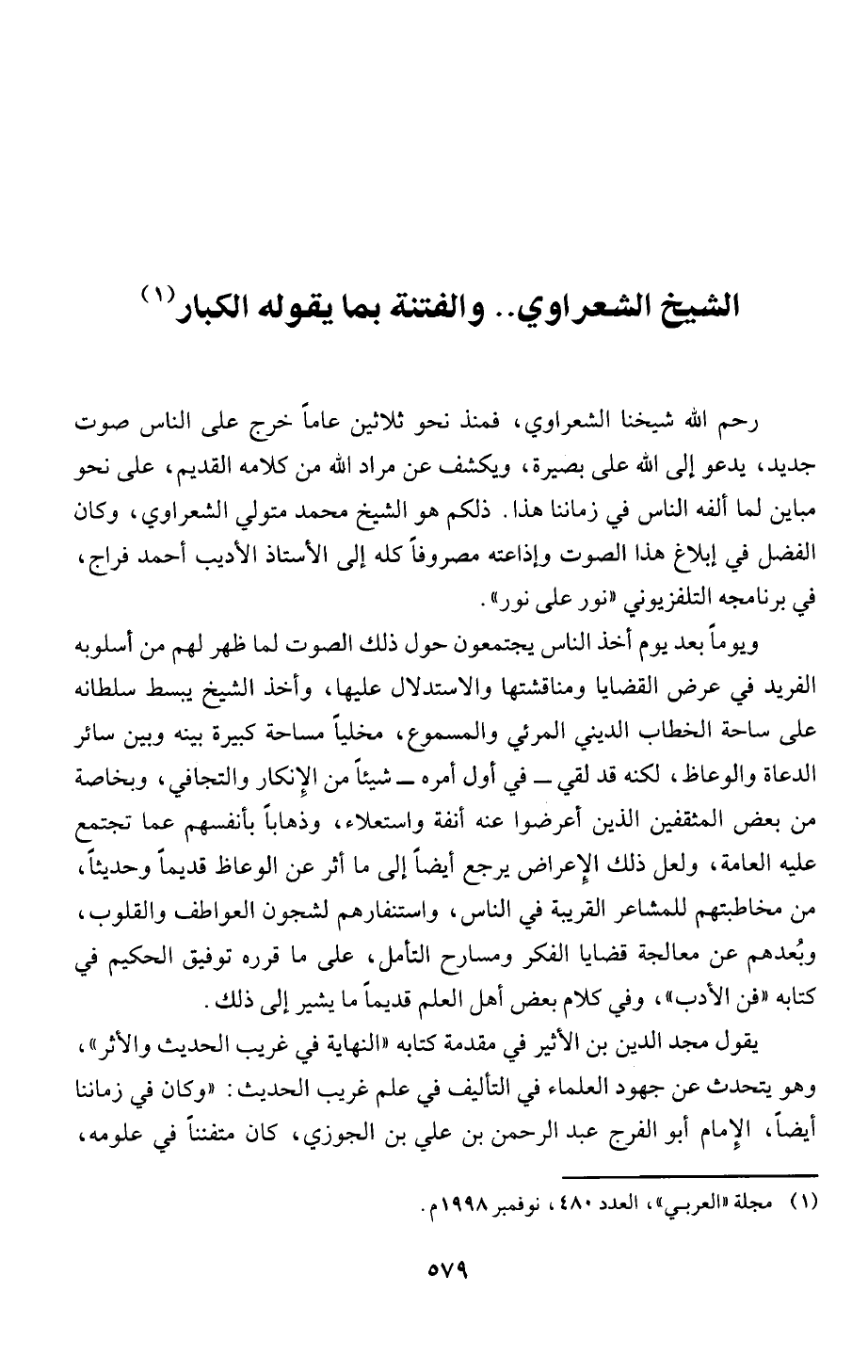الشيخ الشعراوي .. والفتنة بما يقوله الكبار (1)