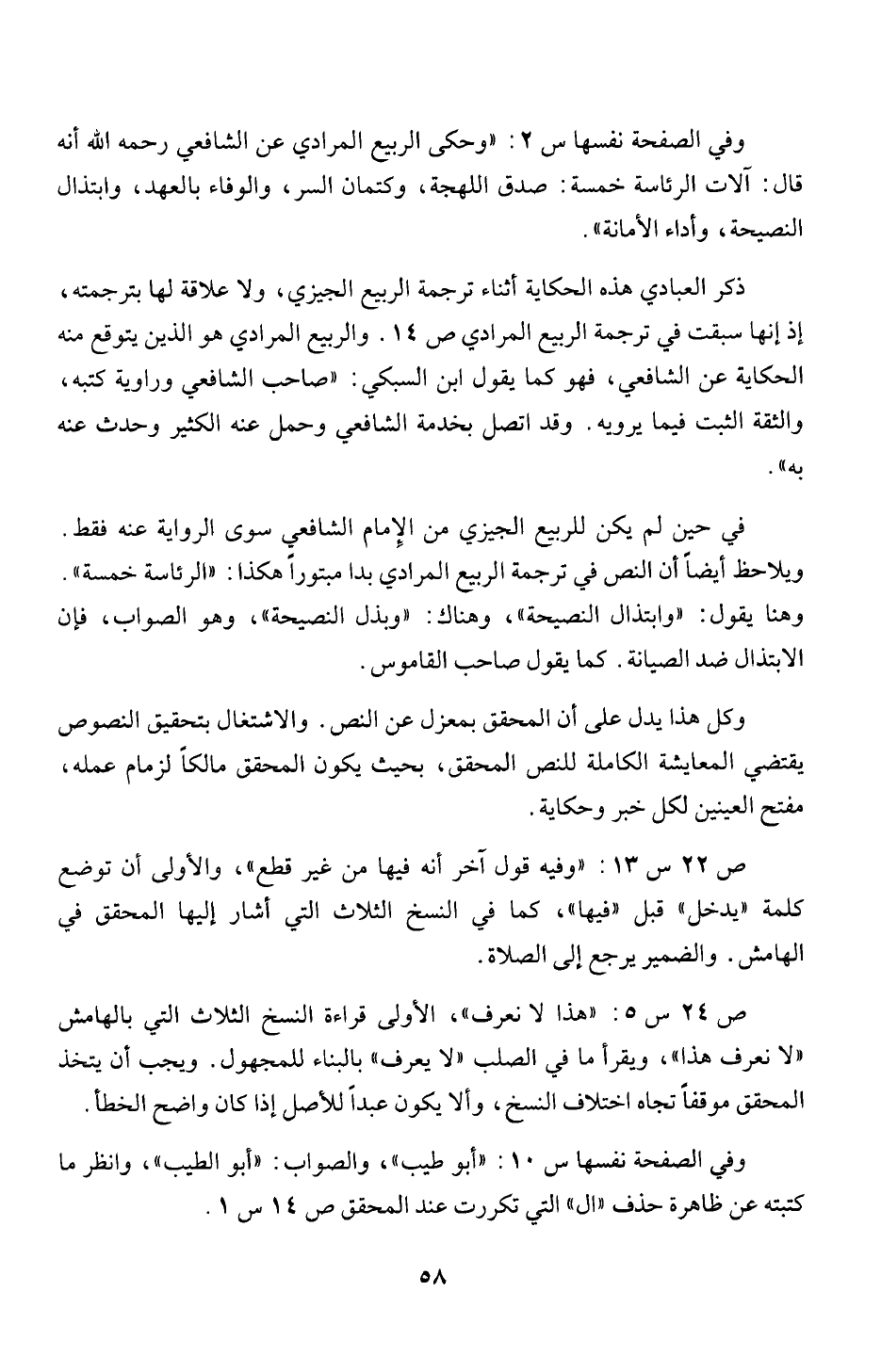 ويلاحط ايضاً أن النص في ترجمة الربيع المرادي بدا مبتوراً هكذا: " الرئاسة خمسة ".