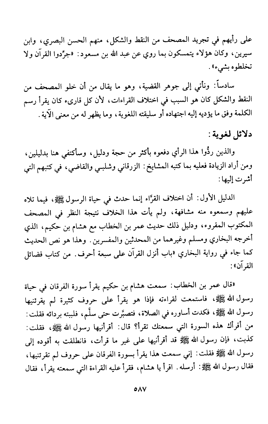سادساَ: ونأتي إلى جوهر القضية، وهو ما يفال من ان خلو المصحف من