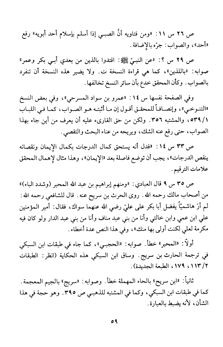 ثانياً: " ابن سريح " بالحاء المهملة خطأ. وصوابه: " سريج " بالجيم المعجمة.