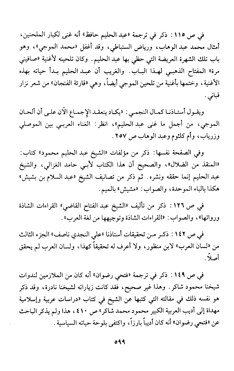 في ص 115: ذكر في ترجمة "عبد الحليم حافظ " أنه غنى لكبار الملحنين،