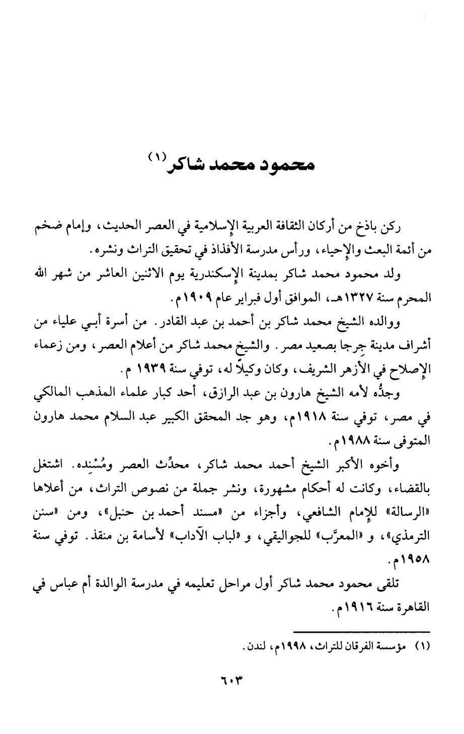 (1) مؤسسة الفرقان للتراث، 998 1 م، لندن.