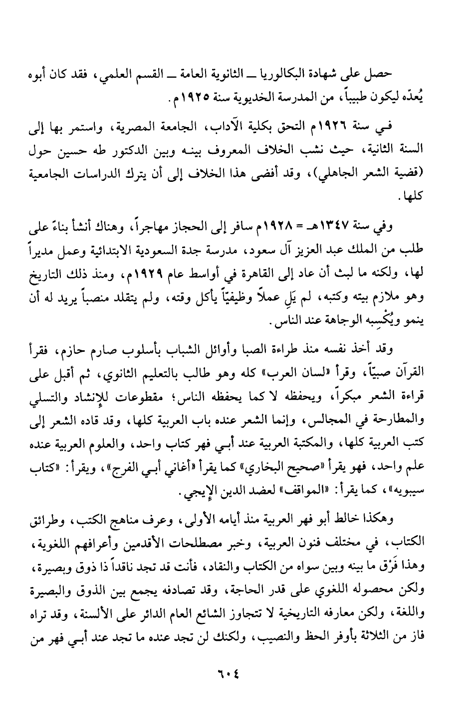 وهكذا خالط ابو فهر العربية منذ أيامه الأولى، وعرف مناهج الكتب، وطرائق