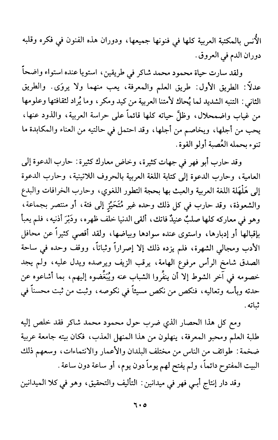 من غياب واضمحلال، وظل حياته كلها قائماً على حراسة العربية، والذود عنها،