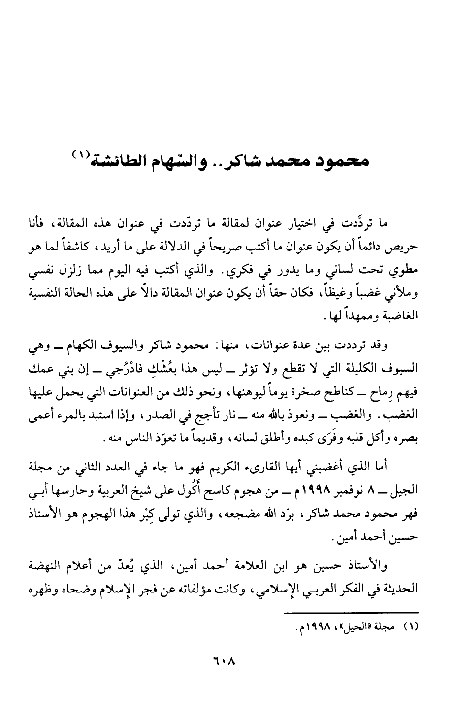 محمود محمد شاكر .. والسّهام الطائشة (1)