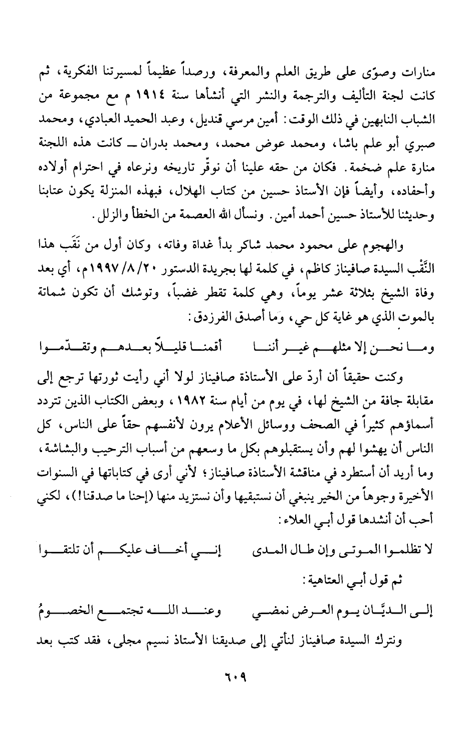 وحديثنا للأستاذ حسين أحمد أمين. ونسأل اللّه العصمة من الخطأ والزلل.
