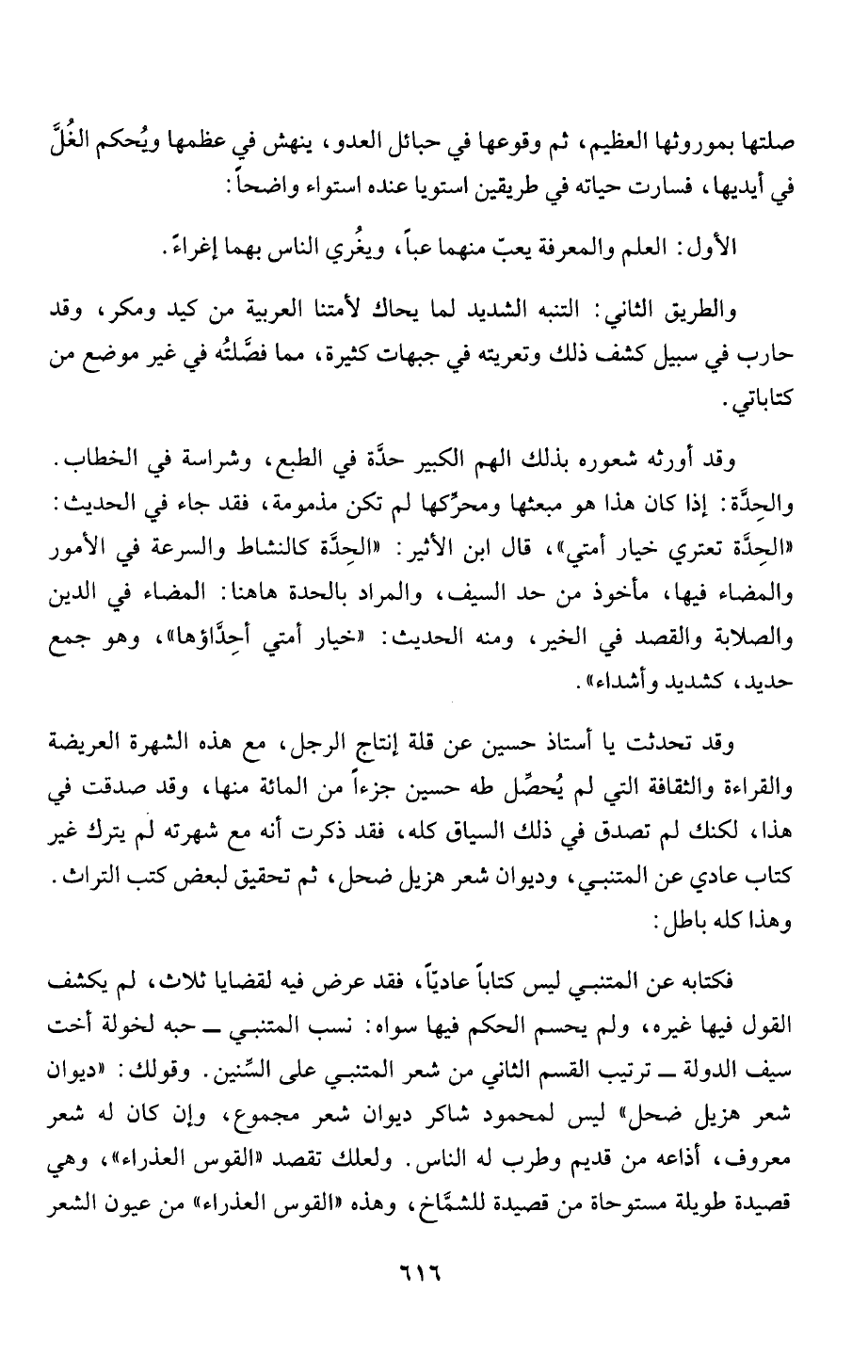 فكتابه عن المتنبي ليس كتاباً عاديّاً، فقد عرض فيه لقضايا ثلاث، لم يكشف