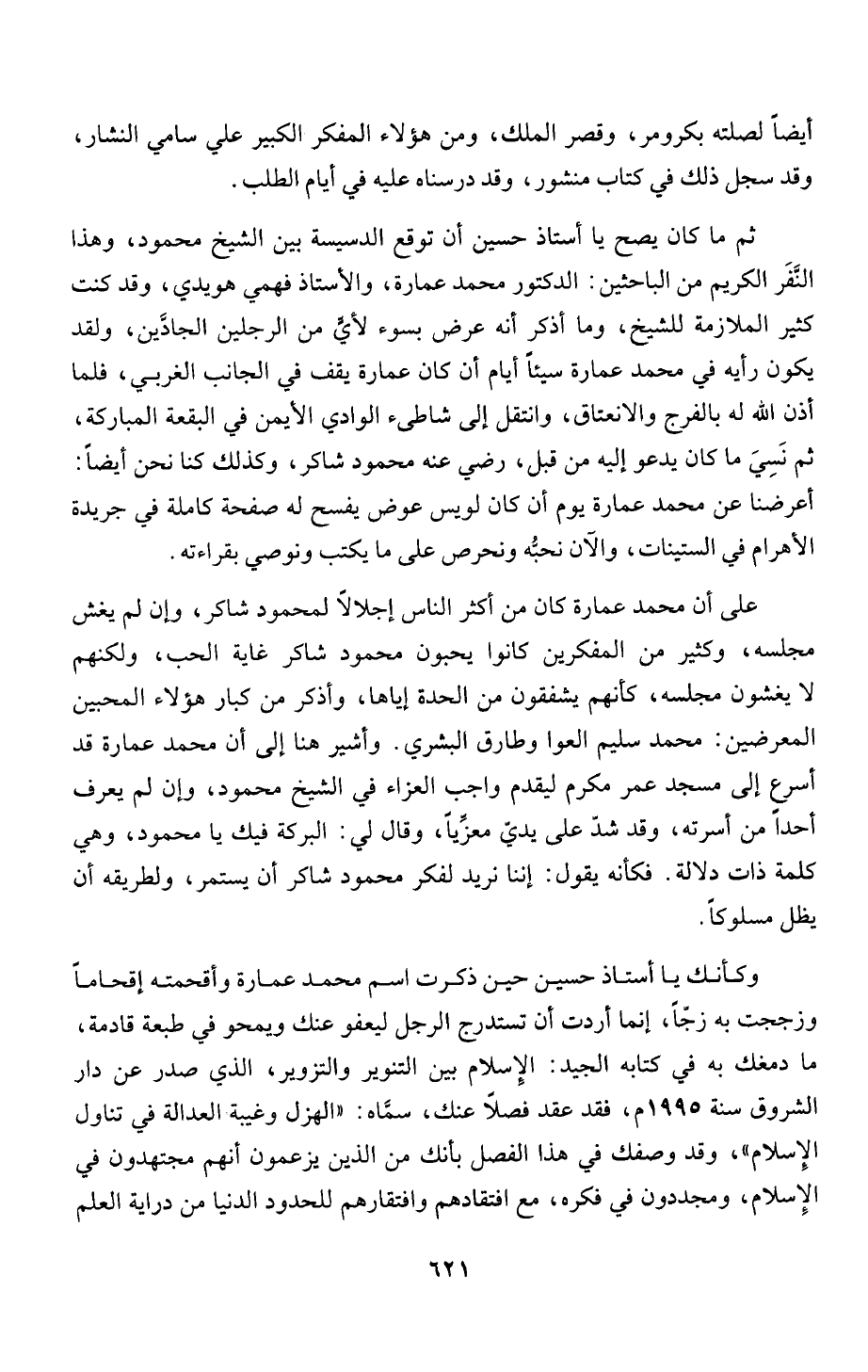 وكأنك يا استاذ حسين حين ذكرت اسم محمد عمارة وأقحمته إقحاماً
