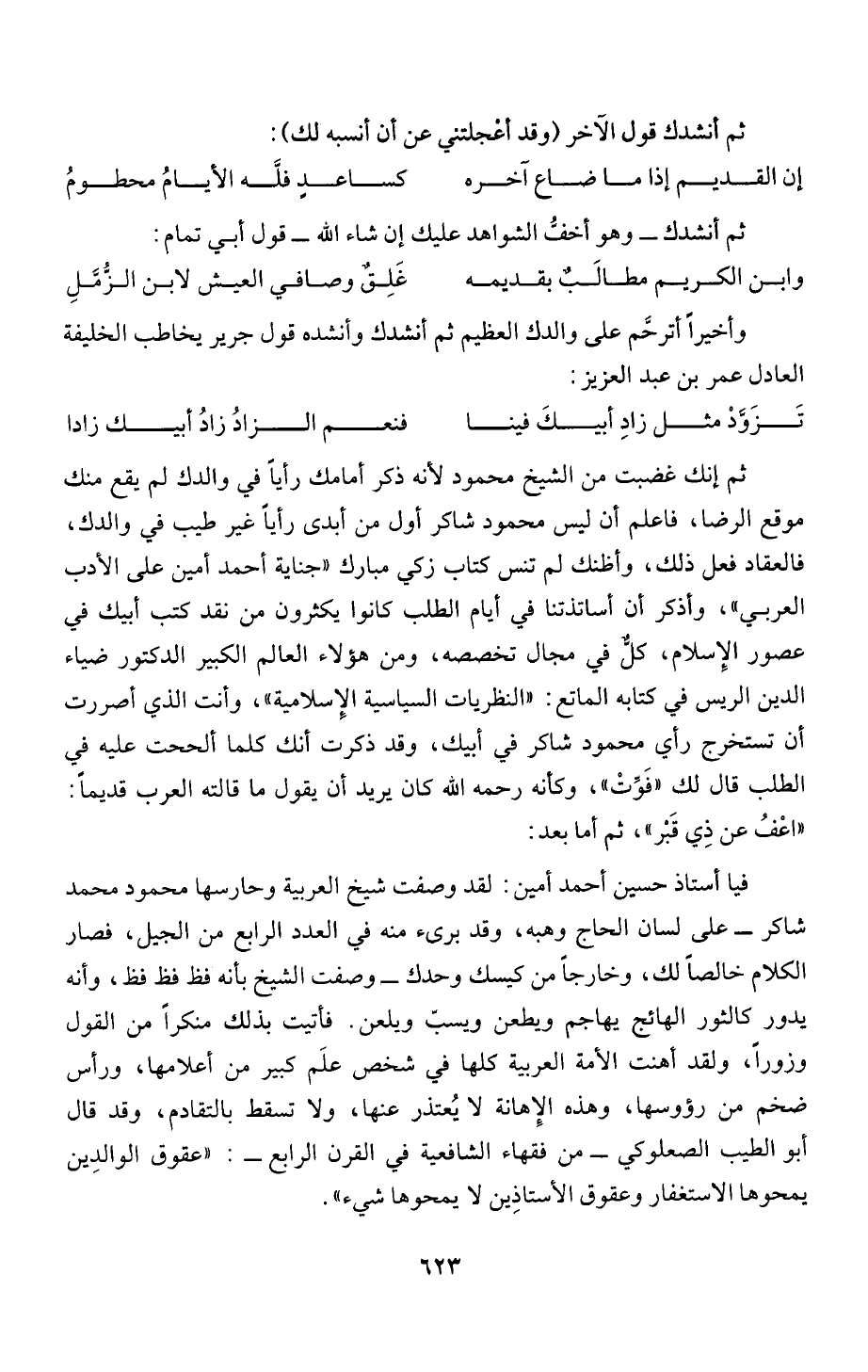 موقع الرضا، فاعلم أن ليس محمود شاكر أول من أبدى رأياً غير طيب في والدك،