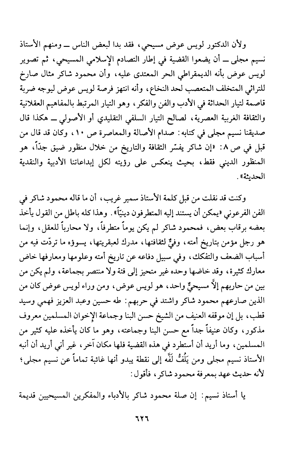 يا أستاذ نسيم: إن صلة محمود شاكر بالأدباء والمفكرين المسيحيين قديمة