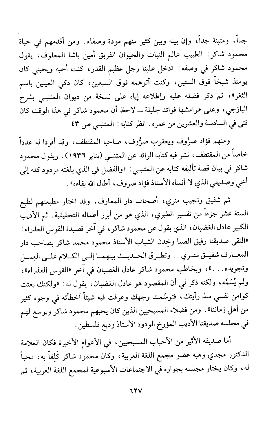 اليازجي، وعلى هواصثمها فوائد جليلة - لاحظ ان محمود شاكر في هذا الوقت كان
