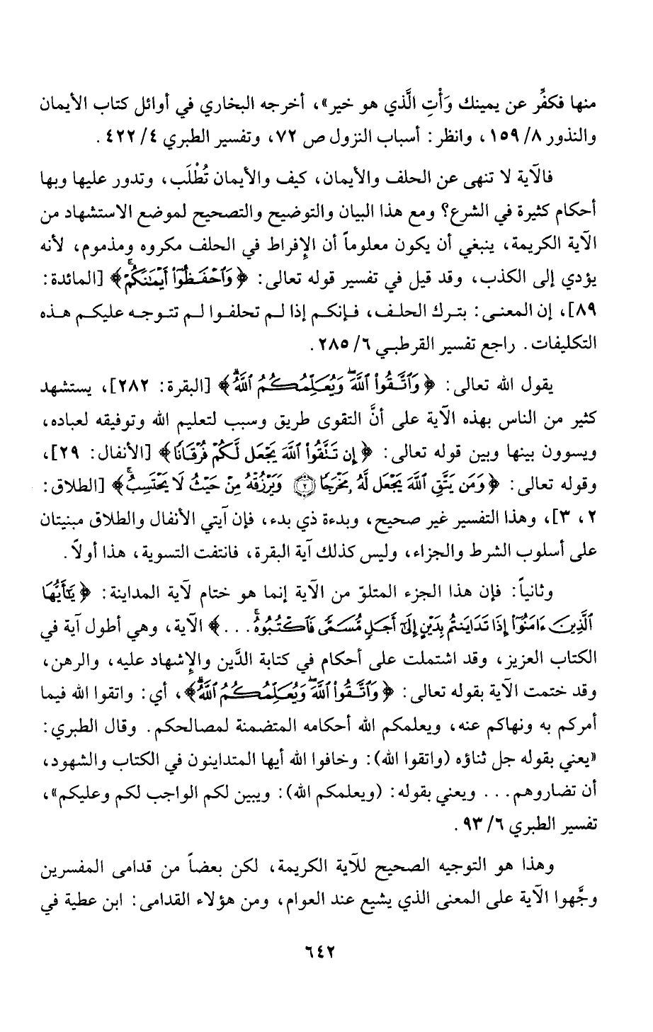 وثانياَ: فإن هذا الجزء المتلوّ من الَاية إنما هو ختام لَاية المداينة: "يَكأَيهَا