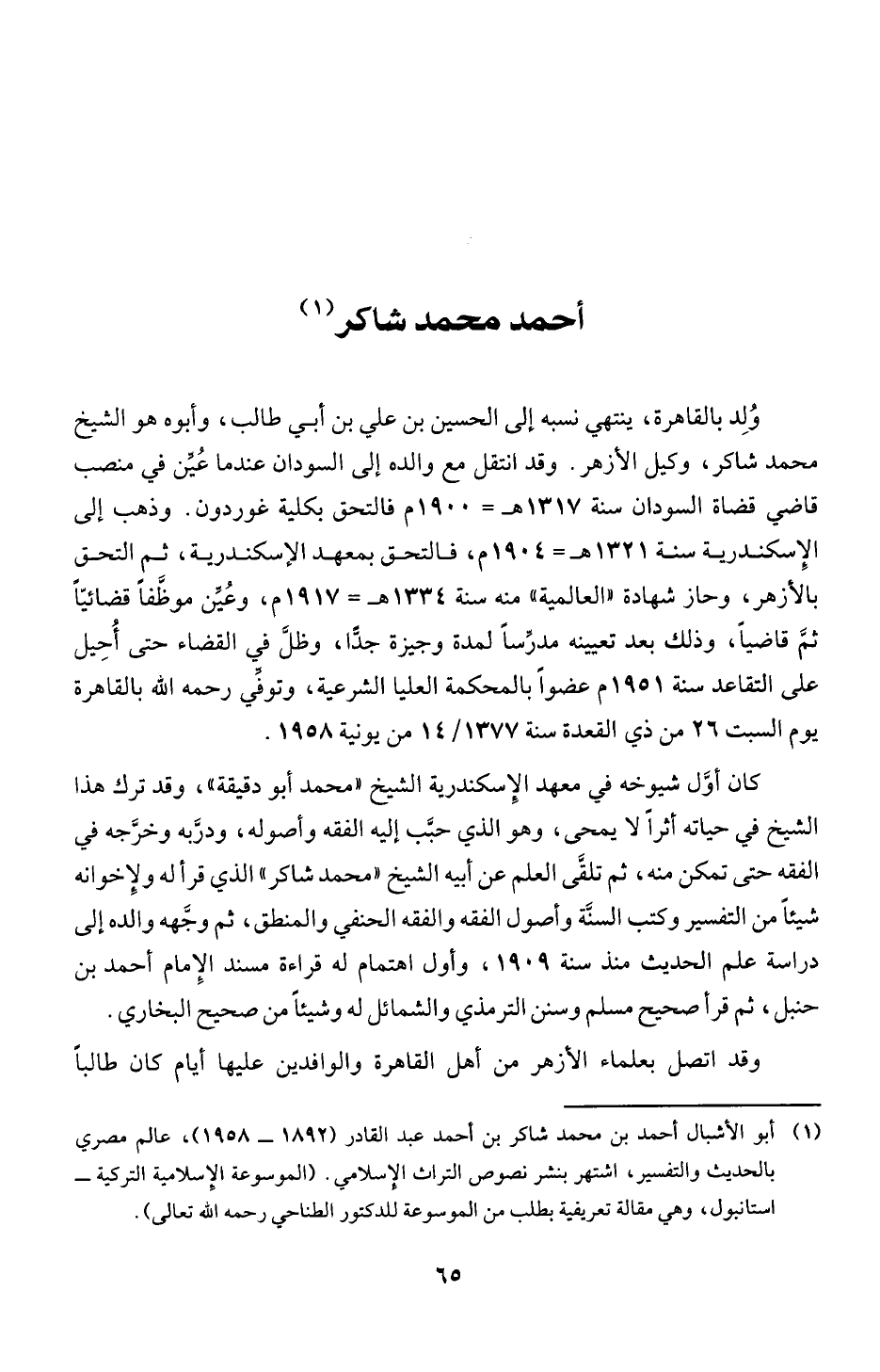 (1) أبو الأشبال أحمد بن محمد شاكر بن أحمد عبد القادر (1892 - 1958)، عالم مصري