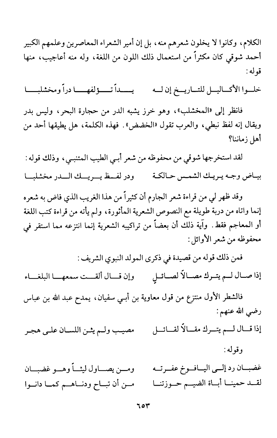 أحمد شوقي كان مكثراً من استعمال ذلك اللون من اللغة، وله منه أعاجيب، منها