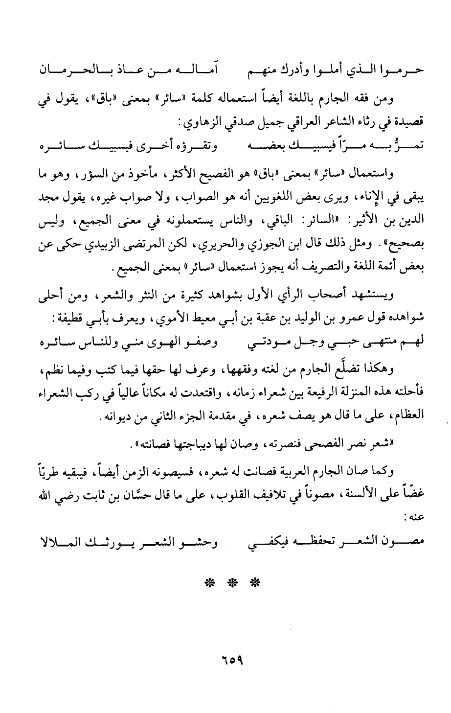 ومن فقه الجارم باللغة أيضاَ استعماله كلمة "سائر" بمعنى "باق"، يقول في