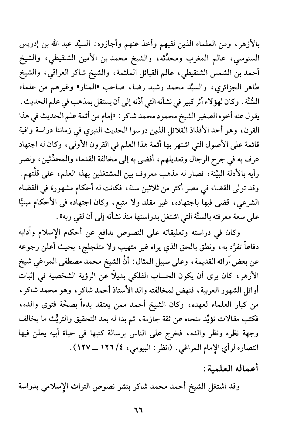 وقد اشتغل الشيخ أحمد محمد شاكر بنشر نصوص التراث الِإسلامي بدراسة