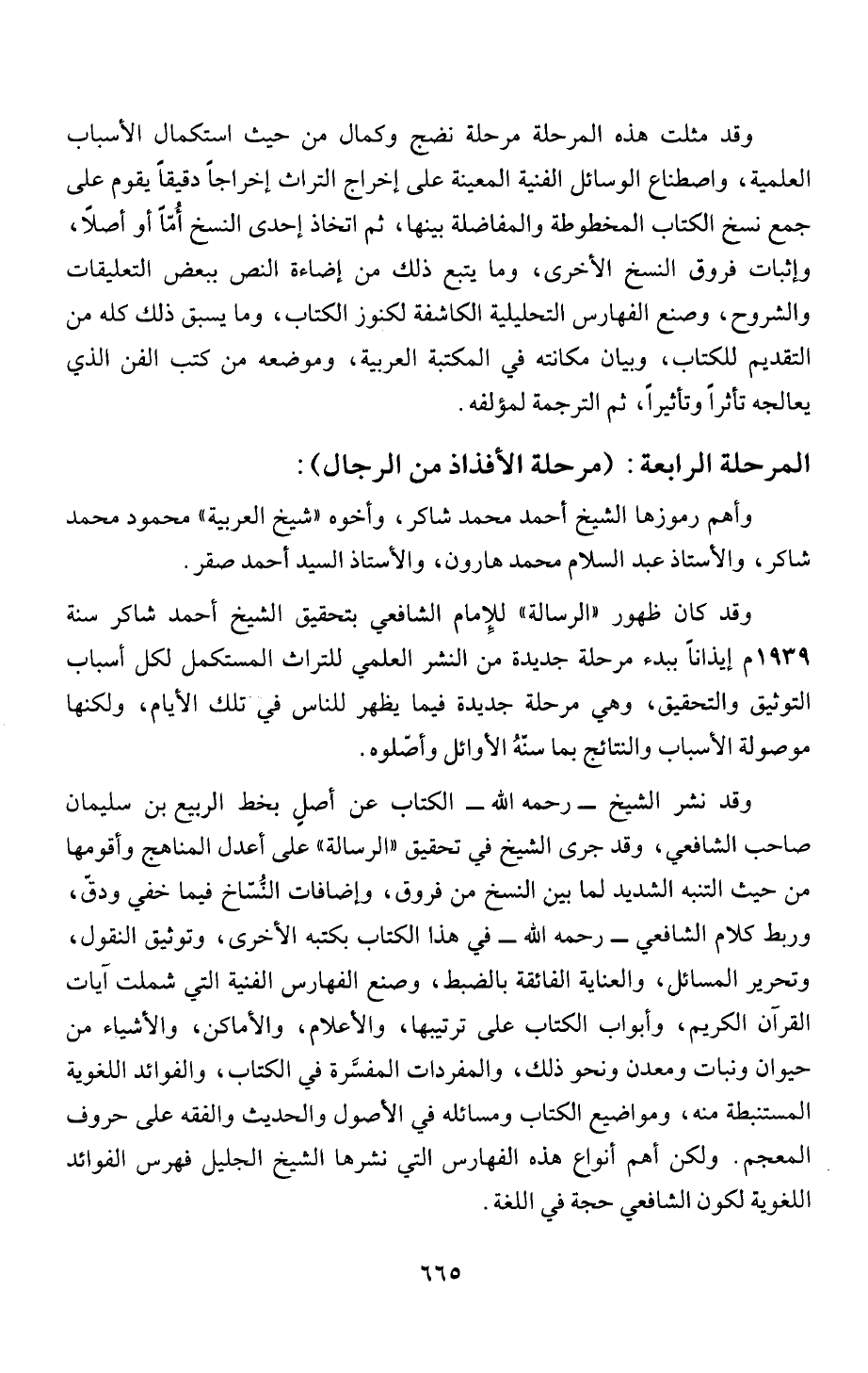 صاحب الشافعي، وقد جرى الشيخ في تحقيق " الرسالة " على اعدل المناهج واقومها