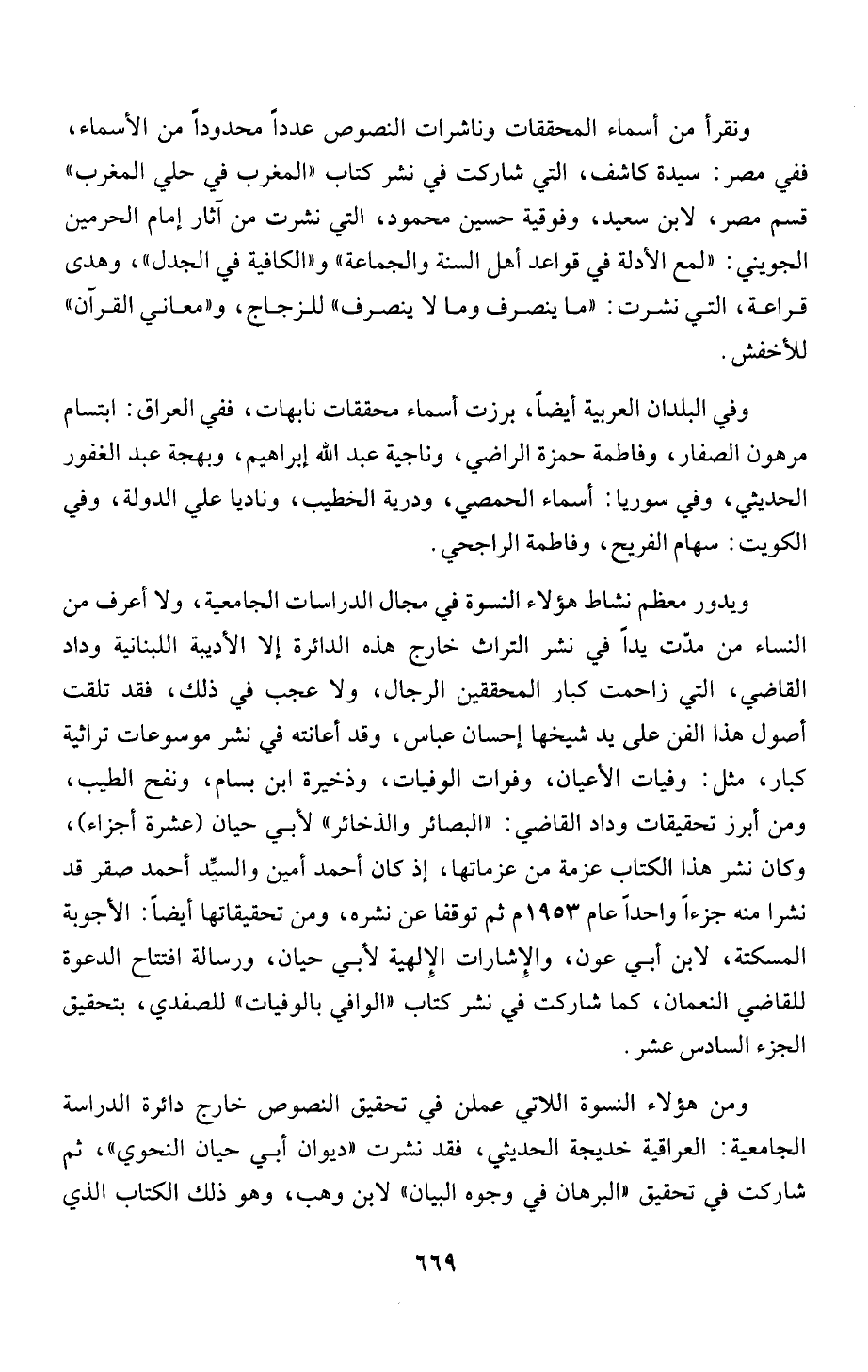 ونقرأ من أسماء المحققات وناشرات النصوص عدداً محدوداً من الأسماء،
