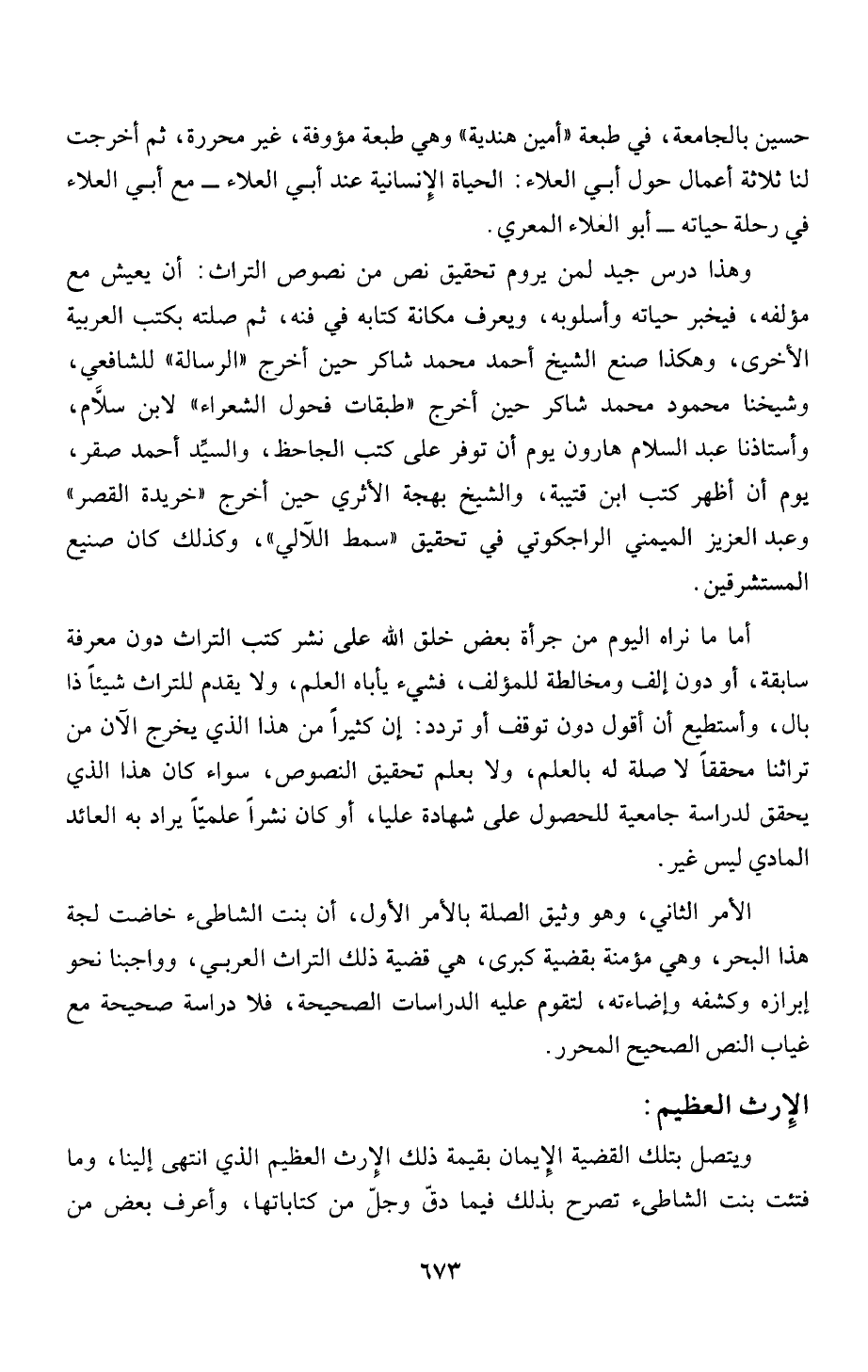 تراثنا محققاً لا صلة له بالعلم، ولا بعلم تحقيق النصوص، سواء كان هذا الذي