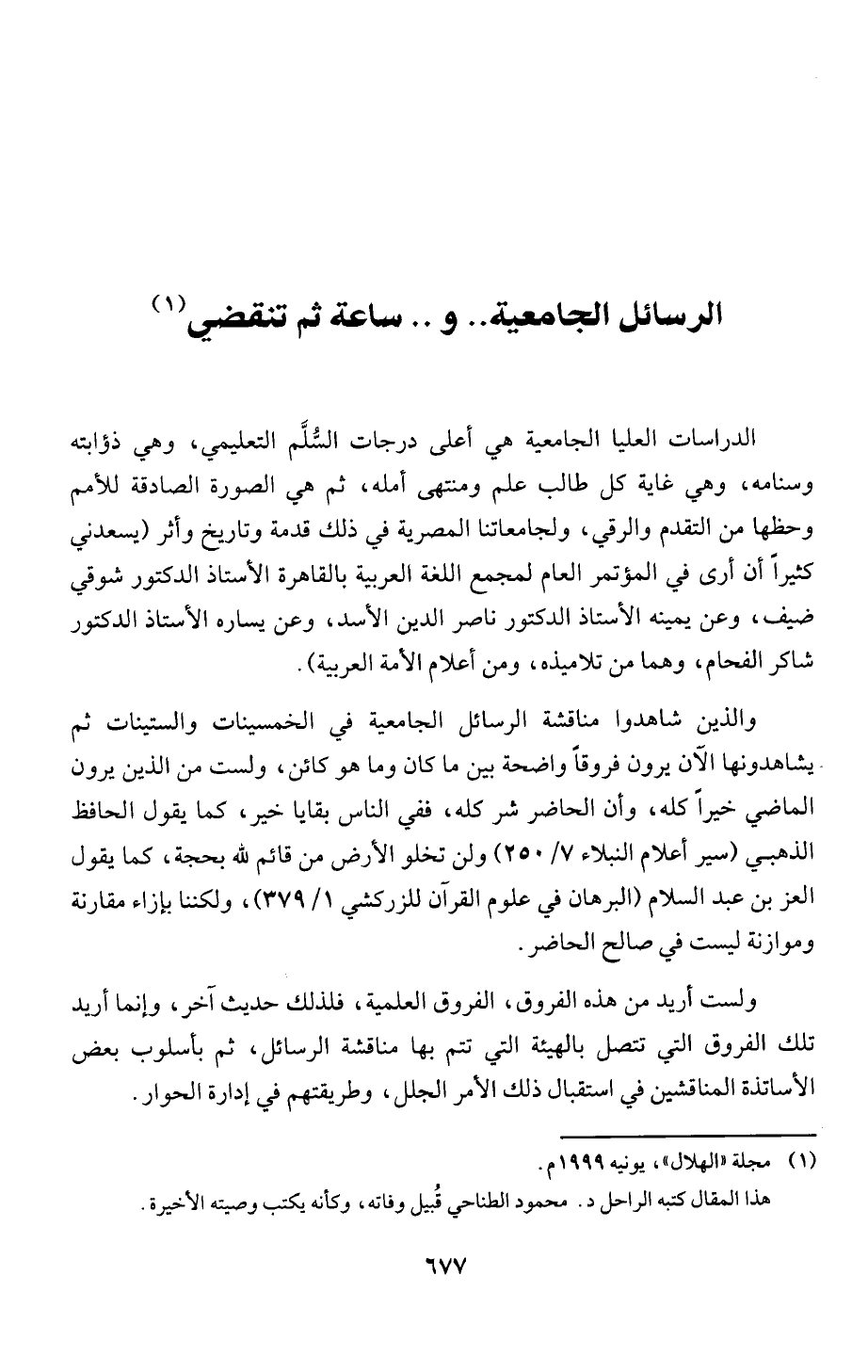(1) مجلة "الهلال"، يو نيه 9 9 9 1 م.