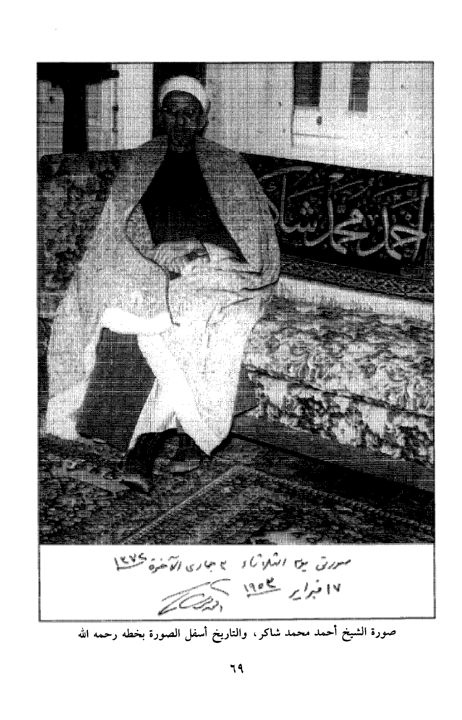 صورة الشيخ أحمد محمد شاكر، والتاريخ أسفل الصورة بخطه رحمه اللّه