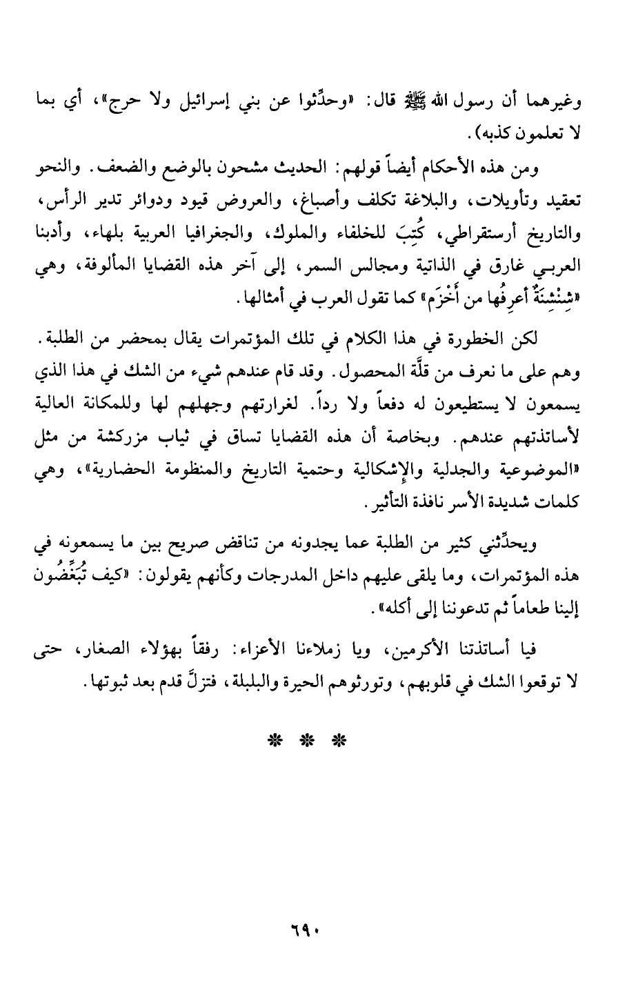 لأساتذتهم عندهم. وبخاصة أن هذه القضايا تساق في ثياب مزركشة من مثل