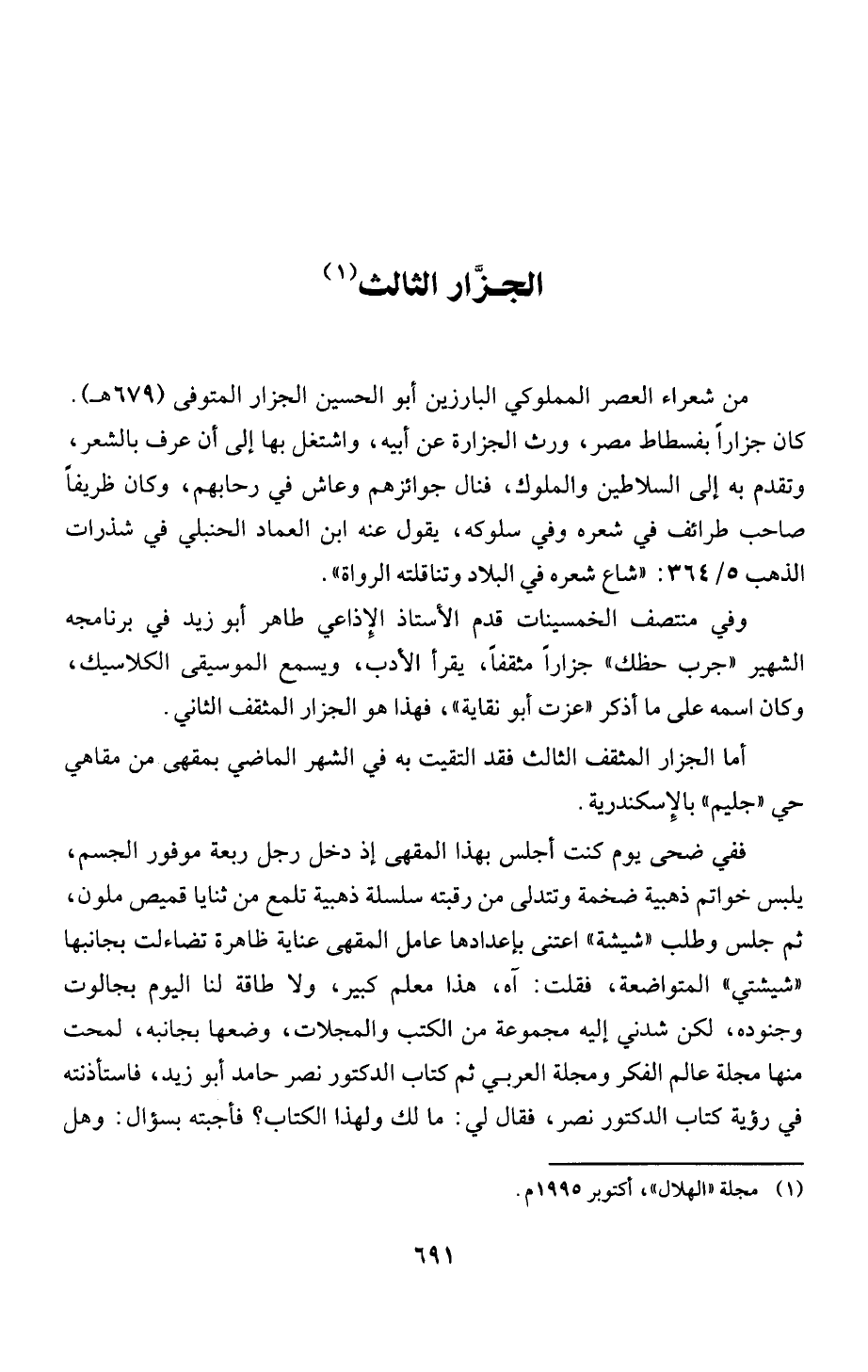(1) مجلة "الهلال"، اكتو بر 5 9 9 1 م.