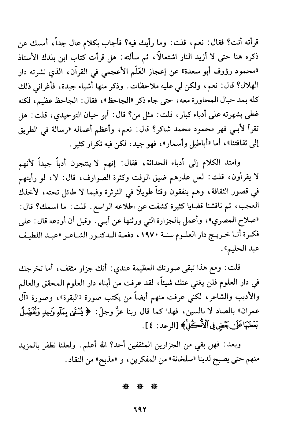 غطى بشهرته على ادباء كبار، قلت: مثل من؟ قال: ابو حيان التوحيدي، قلت: هل