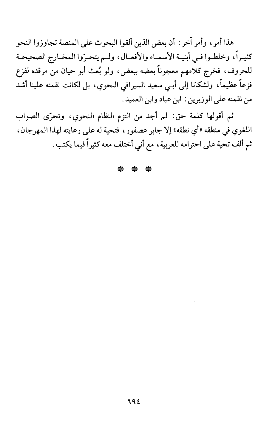 هذا امر، وامر آخر: ان بعض الذين القوا البحوث على المنصة تجاوزوا النحو