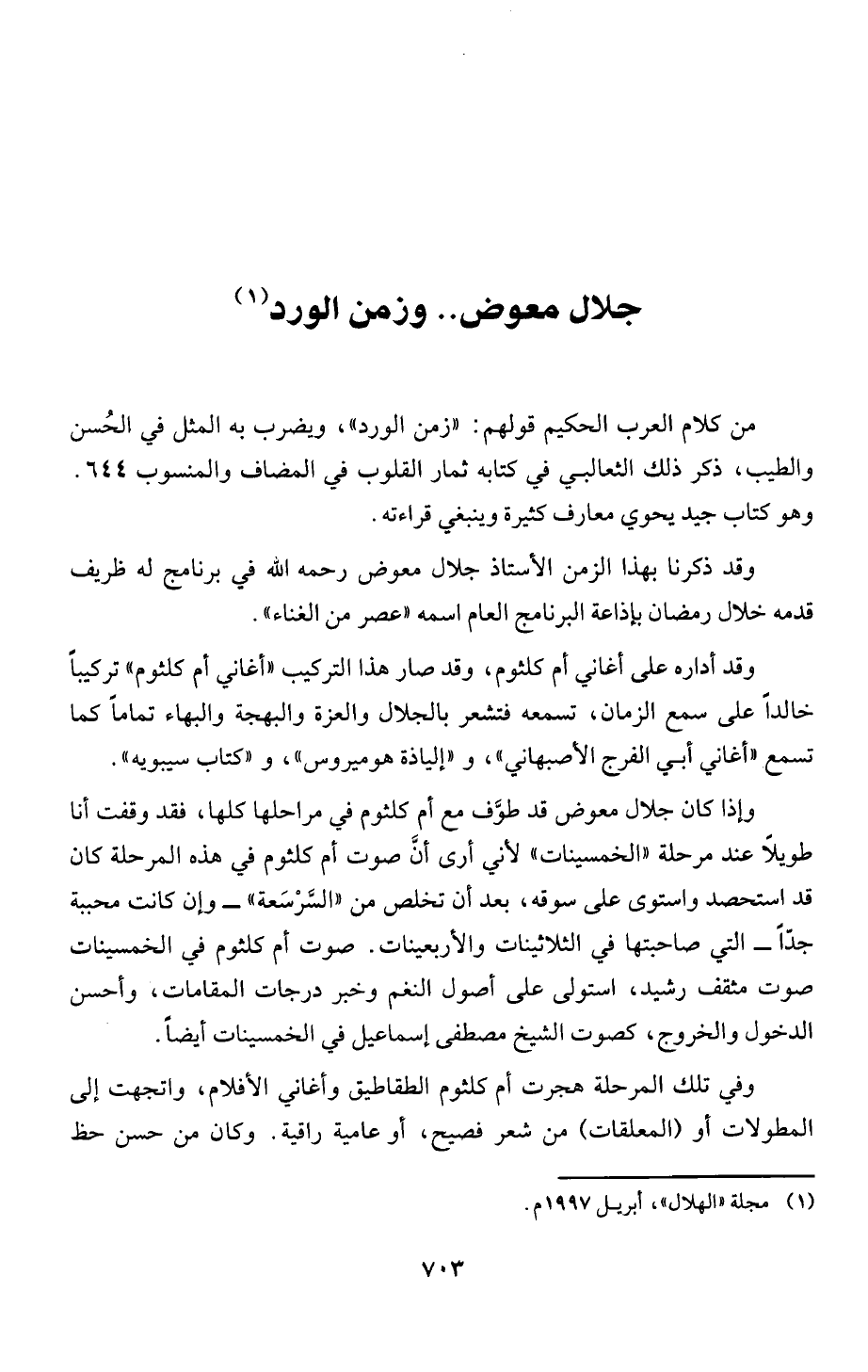 (1) مجلة "الهلال"، أ بريل 7 9 9 1 م.