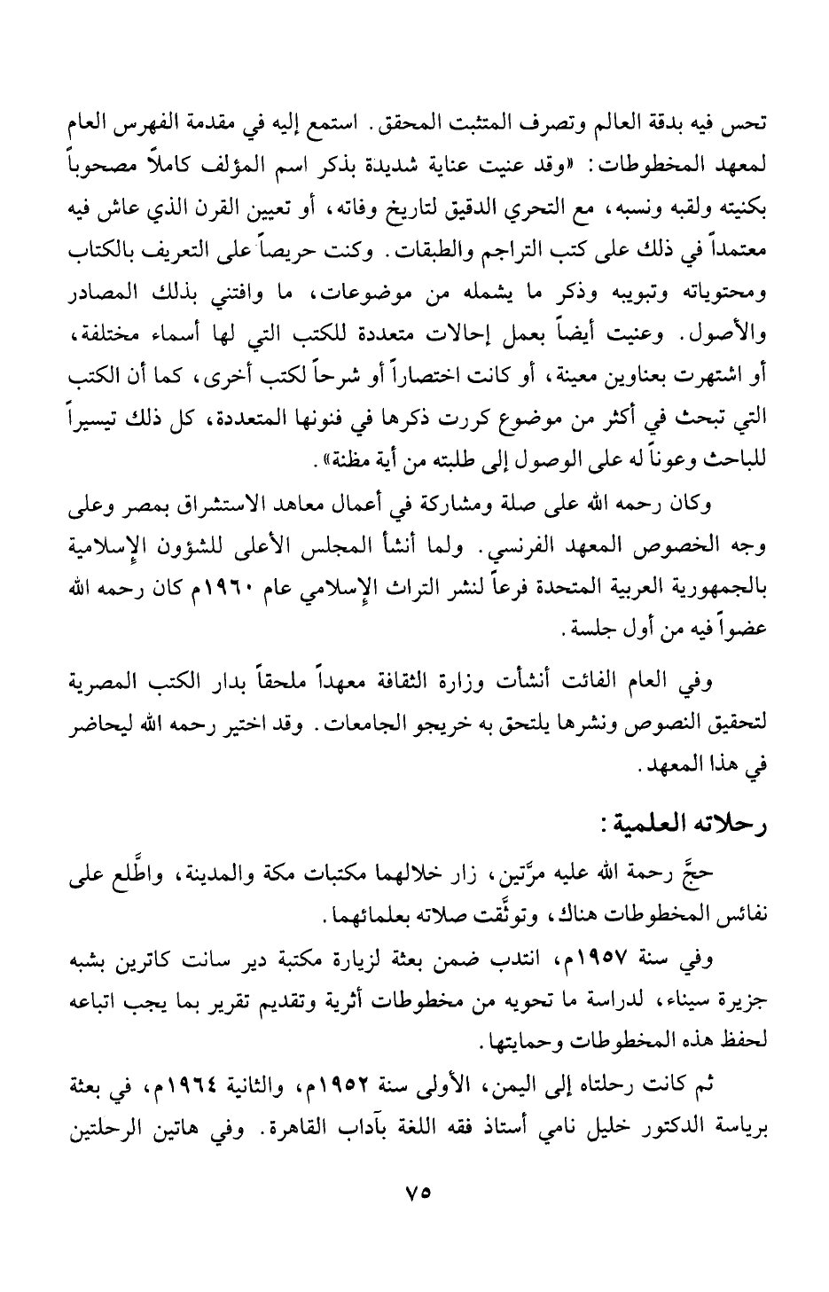 لمعهد المخطوطات: "وقد عنيت عناية شديدة بذكر اسم المؤلف كاملاً مصحوباً