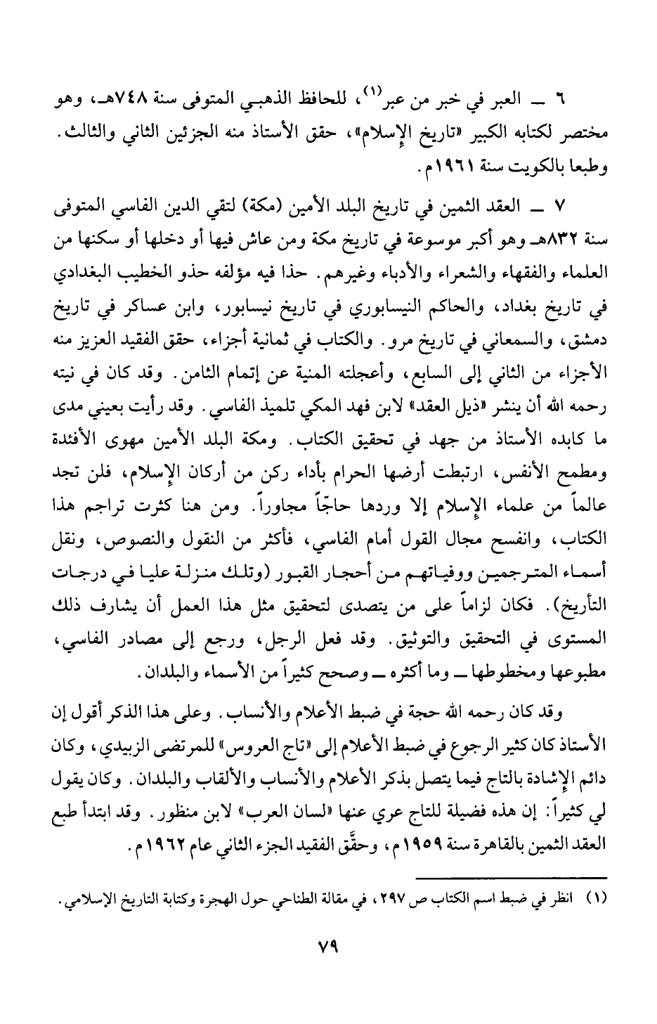 رحمه الله أن ينشر "ذيل العفد" لابن فهد المكي تلميذ الفاسي. وقد رأيت بعيني مدى