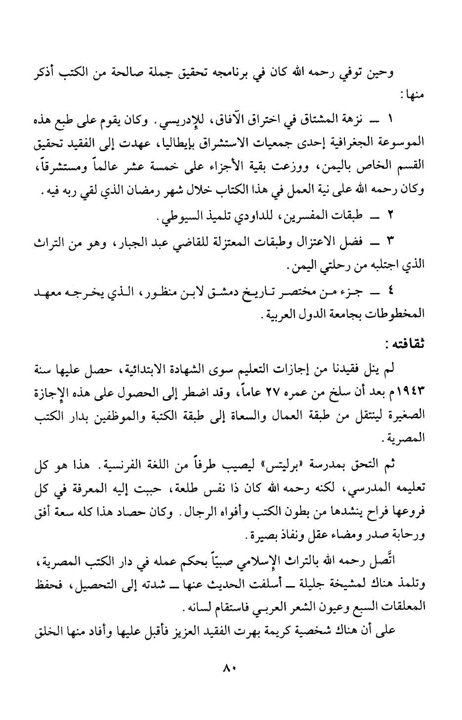 وحين توفي رحمه الله كان في برنامجه تحقيق جملة صالحة من الكتب اذكر