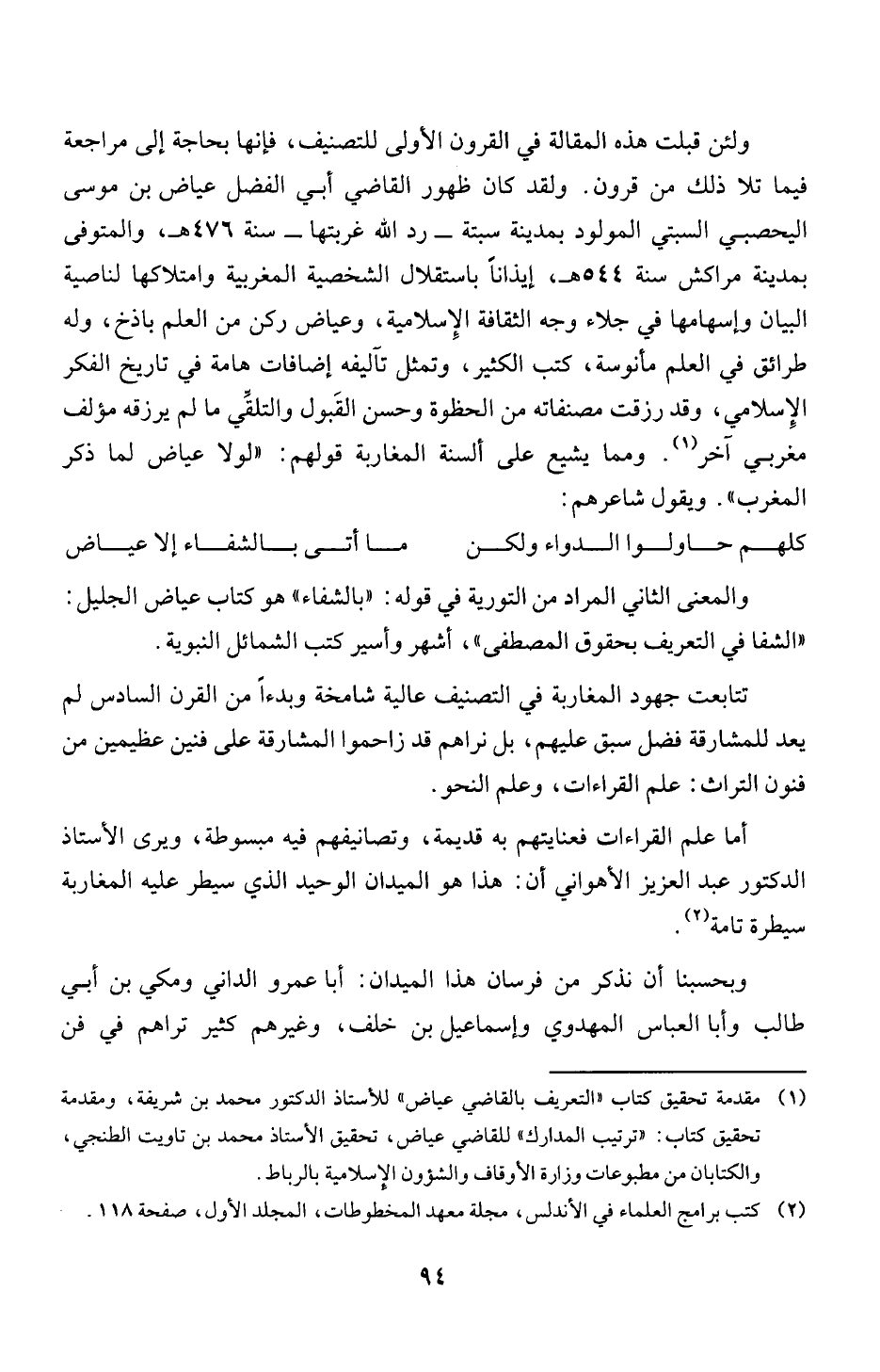 (1) مقدمة تحقيق كتاب إالتعريف بالقاضي عياض " للأستاذ الدكتور محمد بن شريفة، ومقدمة