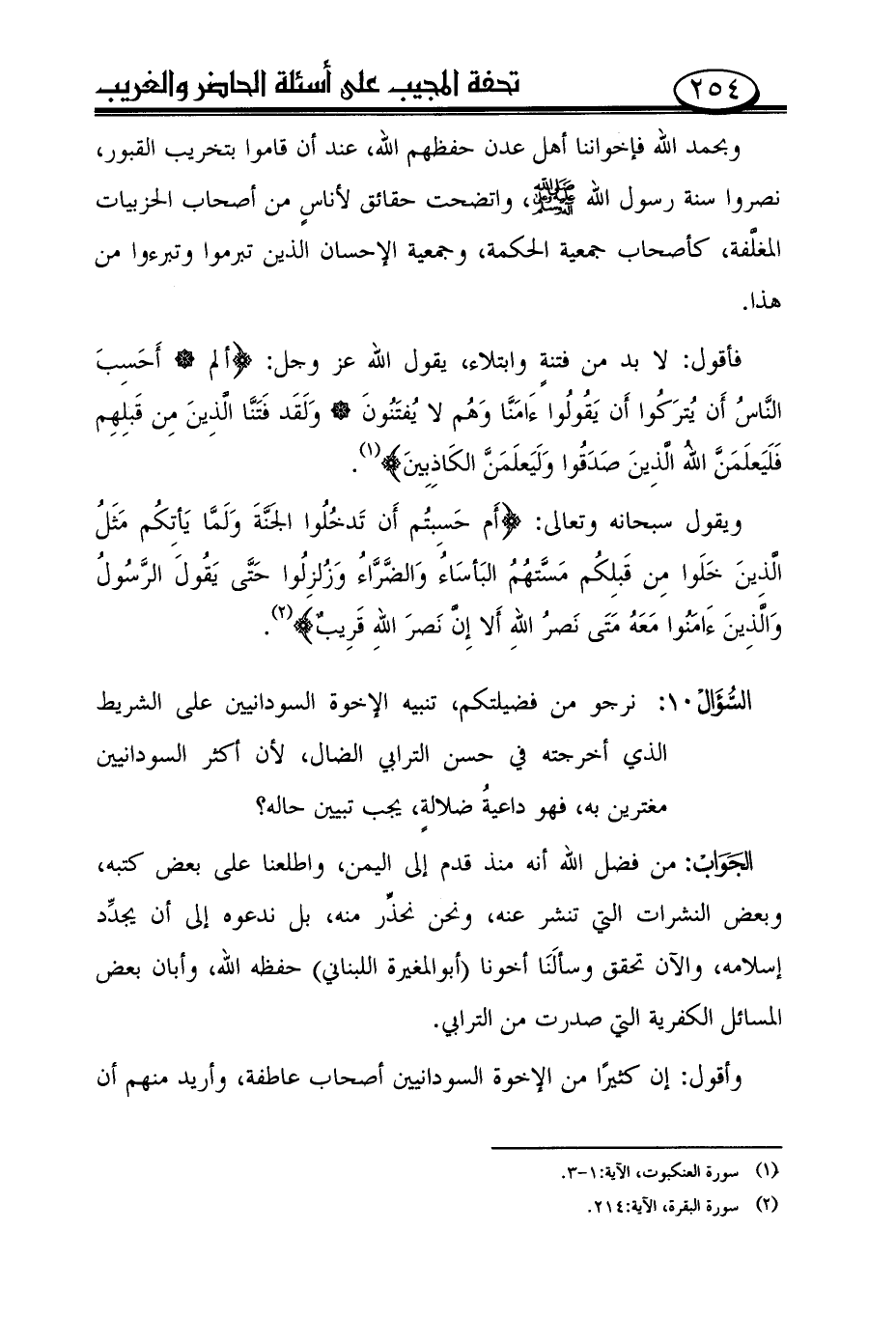السؤال207: نرجو من فضيلتكم، تنبيه الإخوة السودانيين على الشريط الذي أخرجته في حسن الترابي الضال، لأن أكثر السودانيين مغترين به، فهو داعية ضلالة، يجب تبيين حاله؟