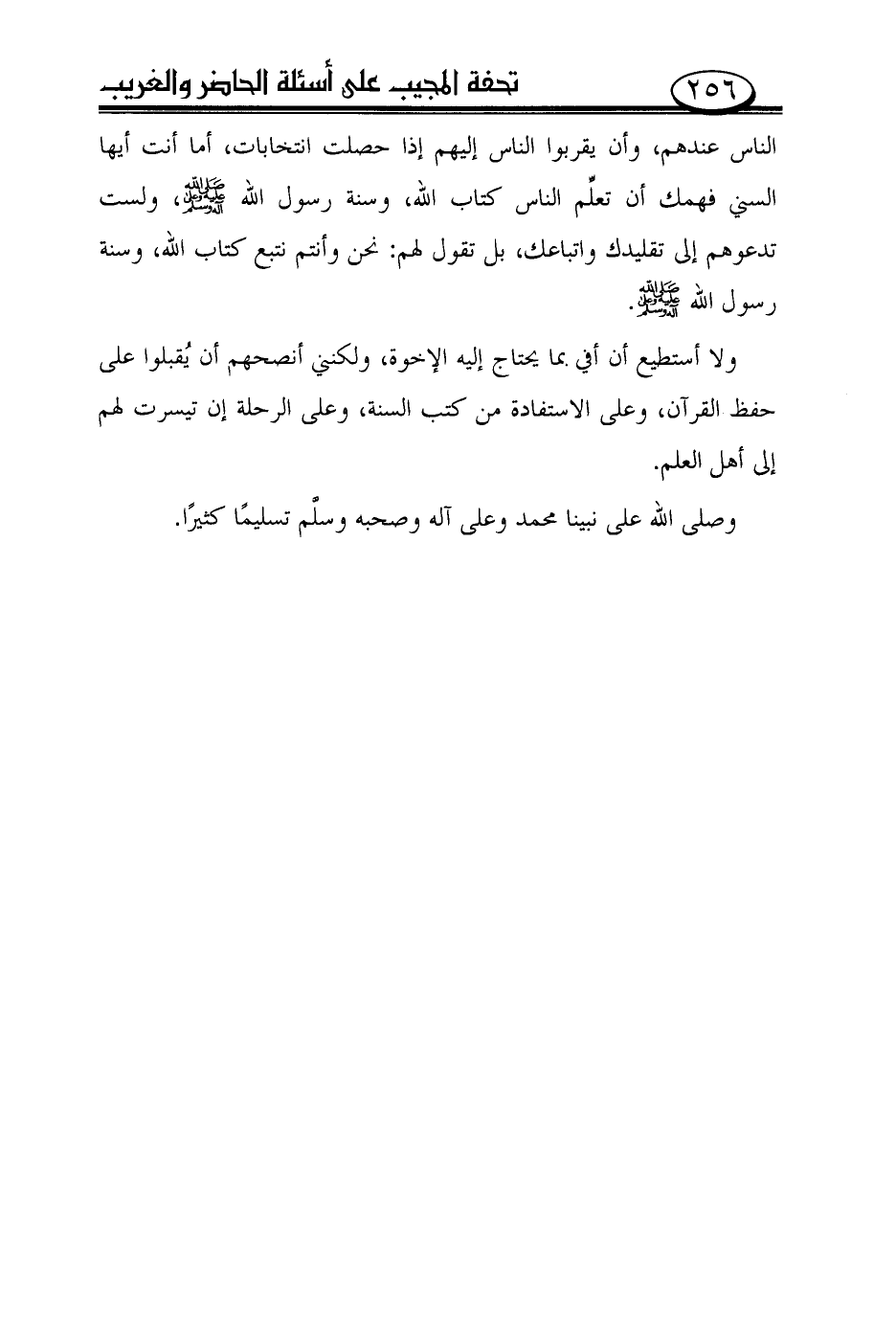 ولا أستطيع أن أفي بما يحتاج إليه الإخوة، ولكنني أنصحهم أن يقبلوا على حفظ القرآن، وعلى الاستفادة من كتب السنة، وعلى الرحلة إن تيسرت لهم إلى أهل العلم.